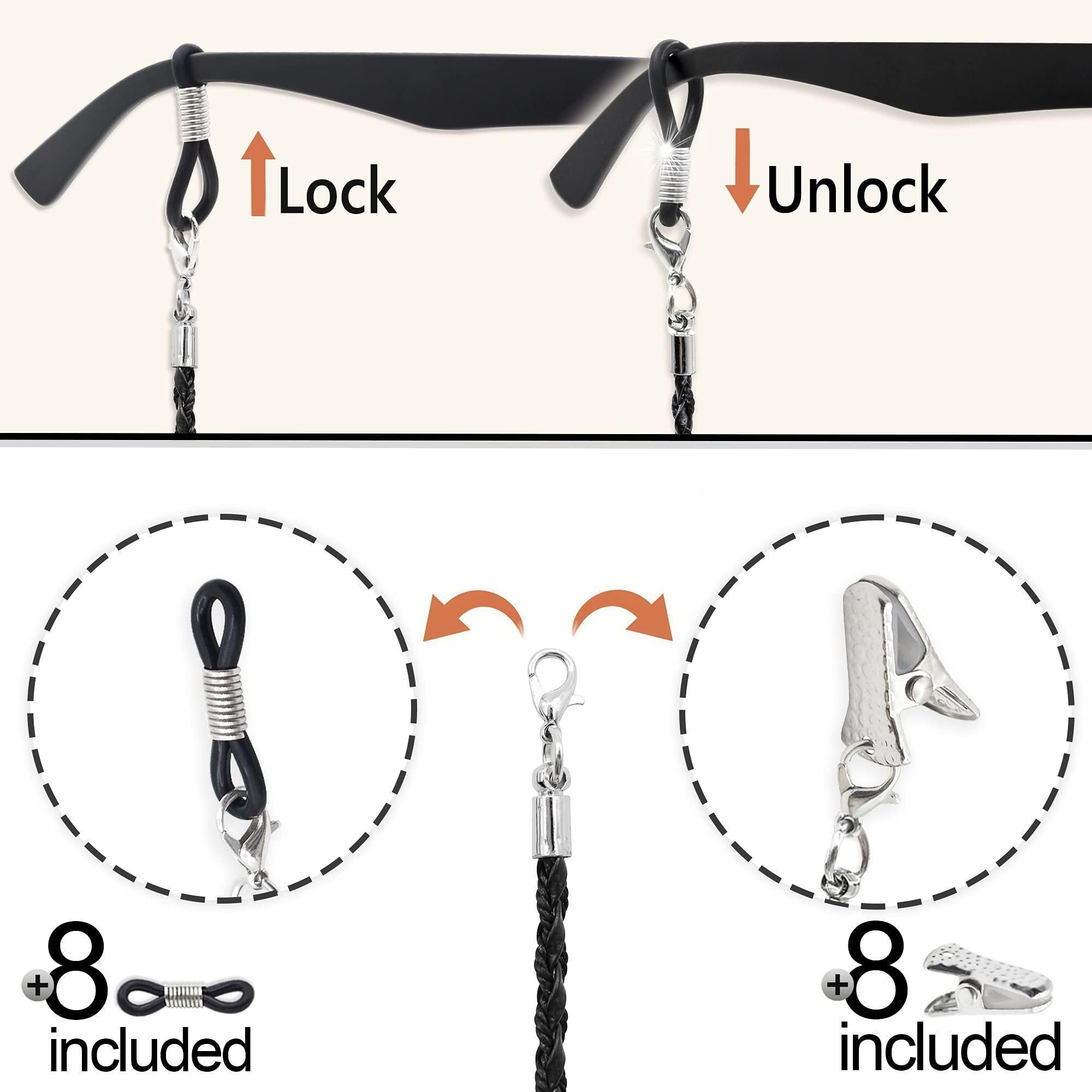 1.reinforced anti-slip clip loop – unlike other eye glasses lanyard for men and women, our eye glasses string holder comes with an advanced anti-slip ring and an elongated spring to prevent your glasses from falling off your neck even when tilted