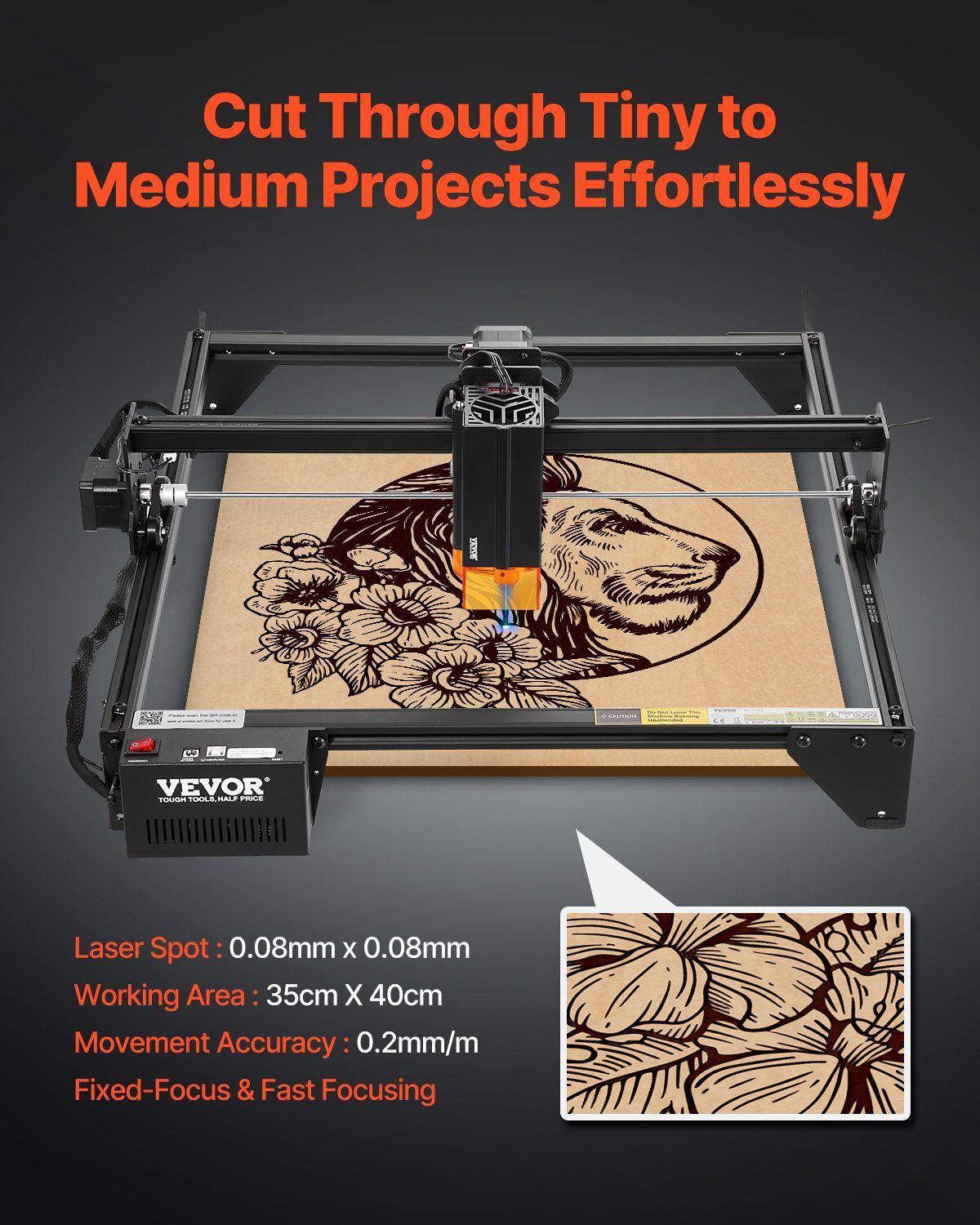 1.Excellent Performance, Reliable Quality: Experience exceptional performance with our laser engraver. With 20W laser power, it effortlessly engraves and cuts over 100 types of materials. Enjoy cutting-edge features like a maximum 5 mm wood cutting capacity, a laser head lifespan of over 10,000 hours(at 80% power), and a spacious 350 x 400 mm engraving area. Ideal for both commercial and personal DIY use. Laser Class: class ΙV, Power Output: 10000mW