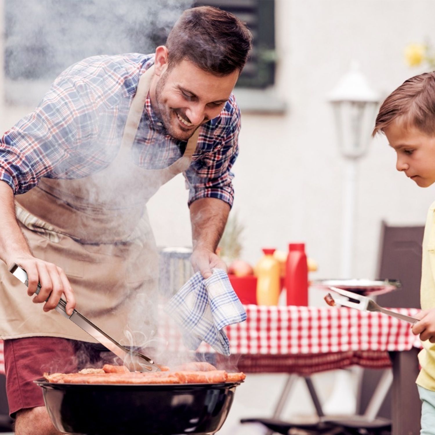 2.Easily season steaks with the basting brush, flip hot dogs or burgers the spatula or tongs