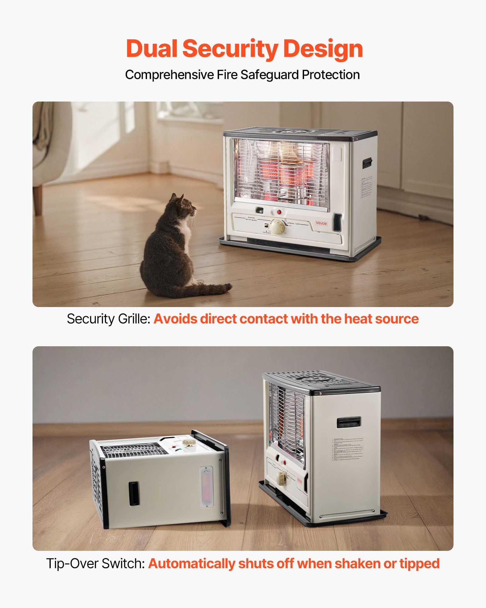 1.Quick Heating: Heats up a 30 m²/323 ft² space in just 9 minutes with a powerful 10, 000 BTU output. Ideal as a radiant kerosene heater for fast, even warmth in indoor or outdoor areas